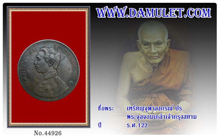 เหรียญจุฬาลงกรณ์ ปร. พระจุลจอมเกล้าเจ้ากรุงสยาม ร.ศ.122
