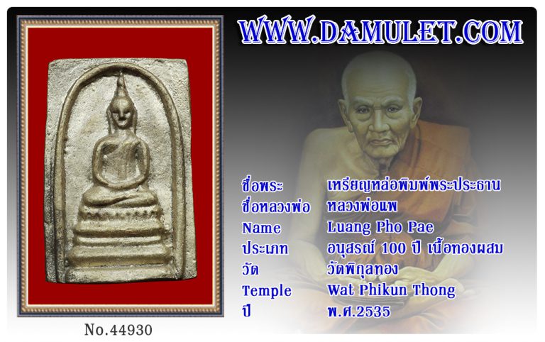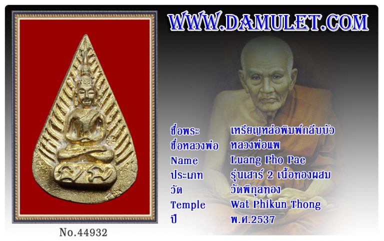 เหรียญหล่อพิมพ์กลีบบัว หลวงพ่อแพ วัดพิกุลทอง พ.ศ.2537