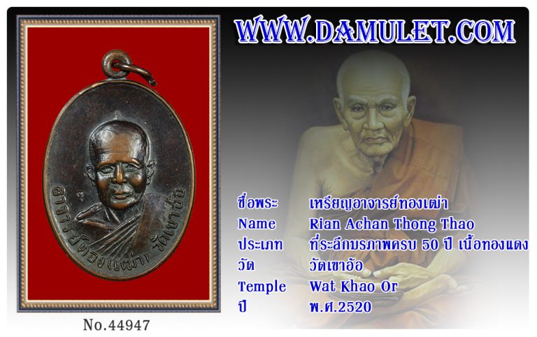 เหรียญอาจารย์ทองเฒ่า วัดเขาอ้อ พ.ศ.2520