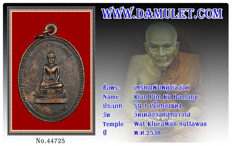 เหรียญพิมพ์คู่บัลลังก์ วัดเคลือวัลย์สุทธาวาส พ.ศ.2538