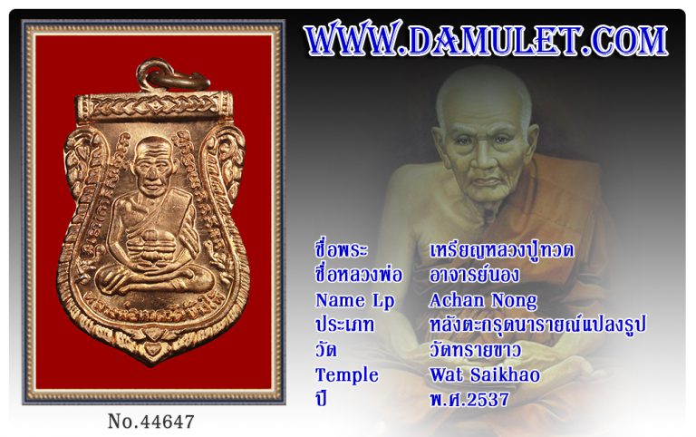 เหรียญหลวงปู่ทวด อาจารย์นอง วัดทรายขาว พ.ศ.2537