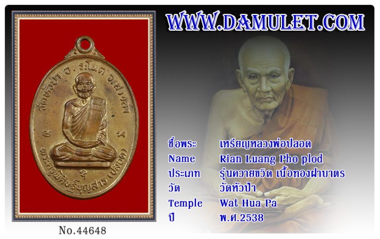 เหรียญหลวงพ่อปลอด วัดหัวป่า พ.ศ.2538