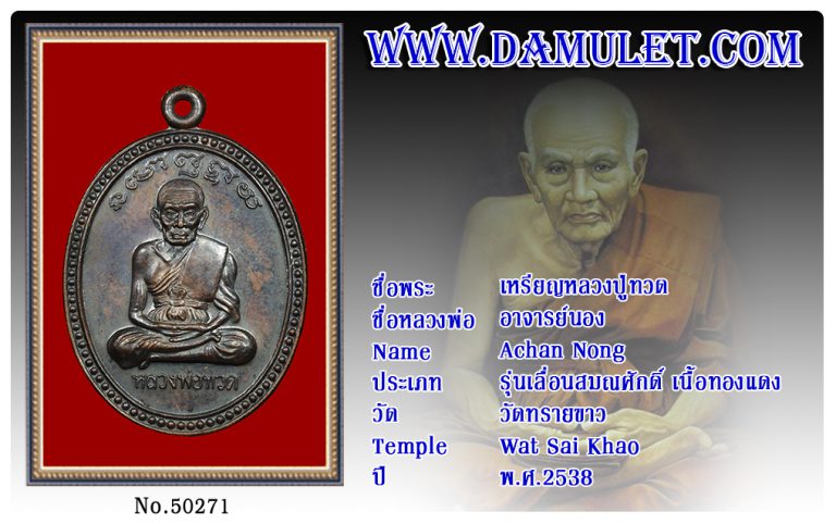 เหรียญหลวงปู่ทวด อาจารย์นอง วัดทรายขาว พ.ศ.2538