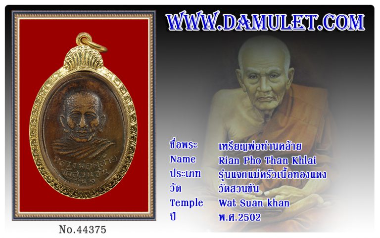 เหรียญหลวงพ่อคล้าย วัดคงคาเลียบ พ.ศ.2505