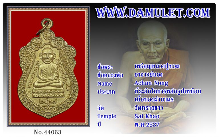 เหรียญหลวงปู่ทวด อาจารย์นอง วัดทรายขาว พ.ศ.2537