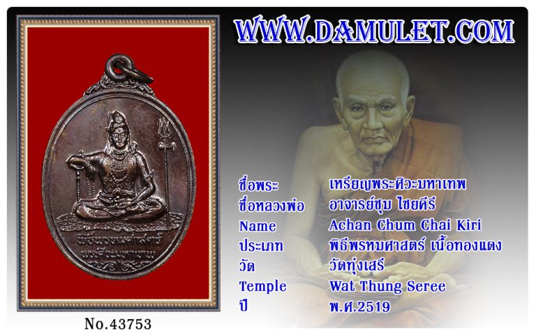 เหรียญพระศิวะมหาเทพ อาจารย์ชุม ไชยคีรี วัดทุ่งเสรี พ.ศ.2519