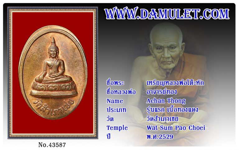 เหรียญหลวงพ่อโต๊ะหัก อาจารย์ทอง วัดสำเภาเชย พ.ศ.2529
