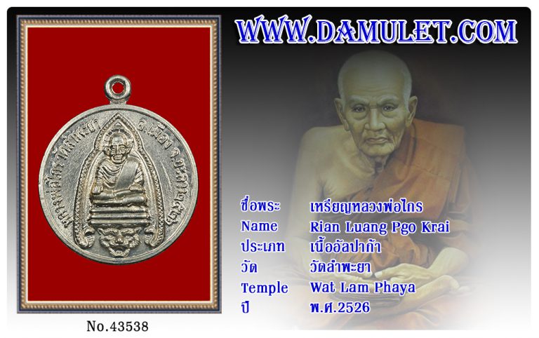 เหรียญหลวงพ่อไกร วัดลำพะยา พ.ศ.2526