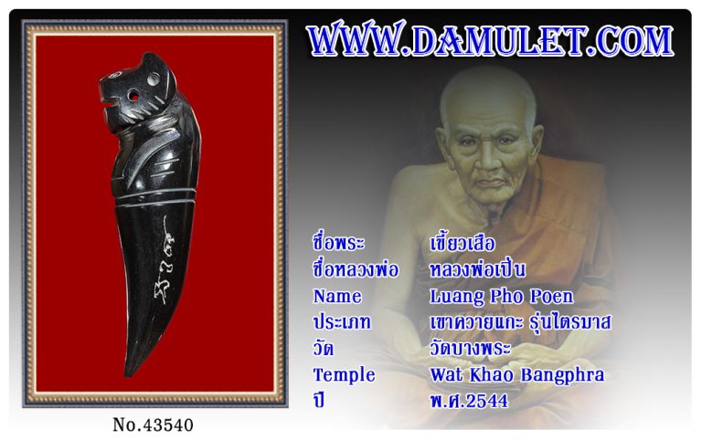 เขี้ยวเสือ หลวงพ่อเปิ่น วัดบางพระ พ.ศ.2544