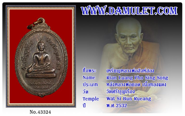 เหรียญหลวงพ่อสิงห์สอง วัดศรีบุญเรือง พ.ศ.2532