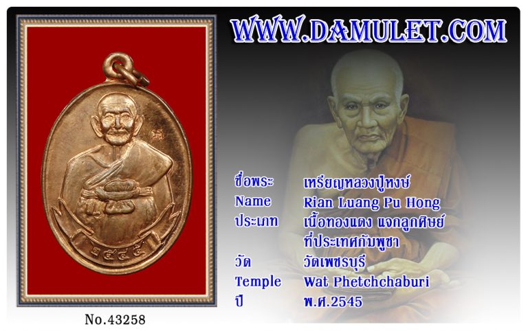 เหรียญหลวงปู่หงษ์ วัดเพชรบุรี พ.ศ.2545