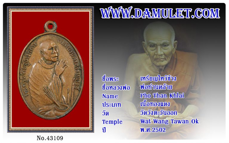 เหรียญไหว้ข้าง พ่อท่านคล้าย วัดวังตะวันออก พ.ศ.2502