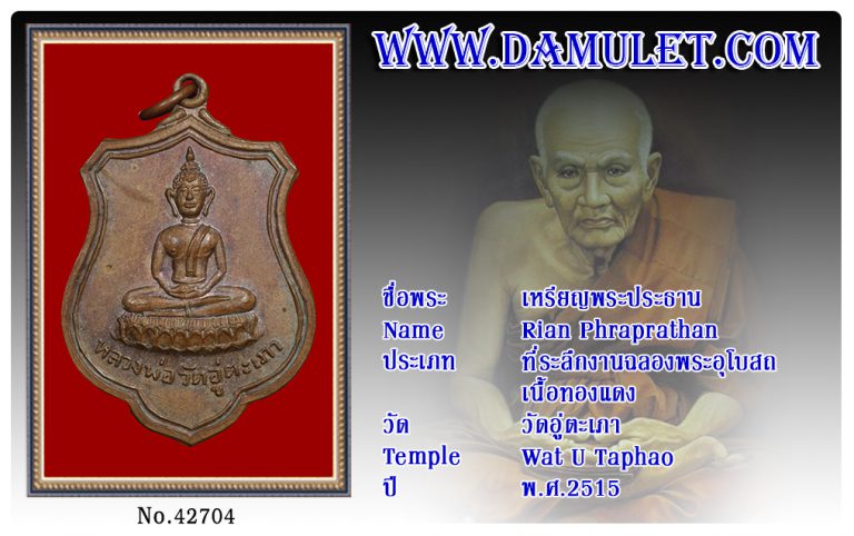 เหรียญพระประธาน วัดอู่ตะเภา พ.ศ.2515