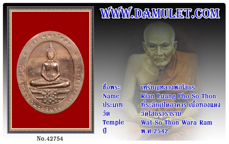 เหรียญหลวงพ่อโสธร วัดโสธรวราราม พ.ศ.2542