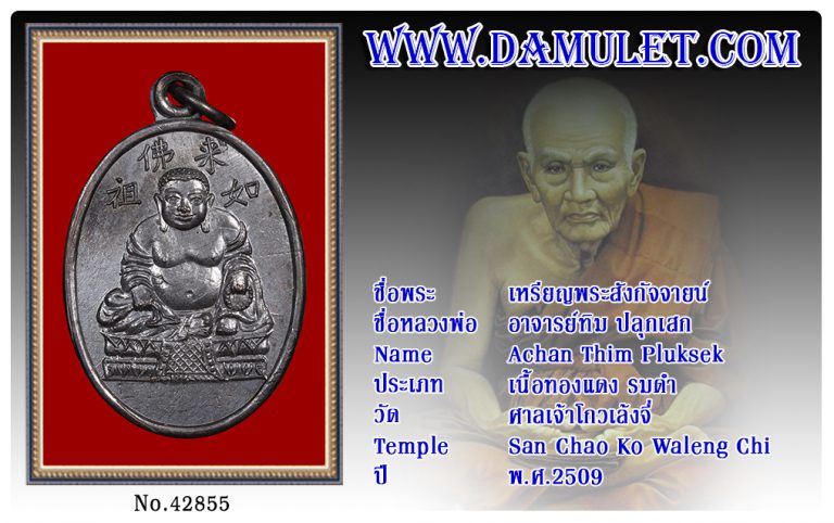 เหรียญพระสังกัจจายน์ อาจารย์ทิม ปลุกเสก ศาลเจ้าโกวเล้งจี่ พ.ศ.2509