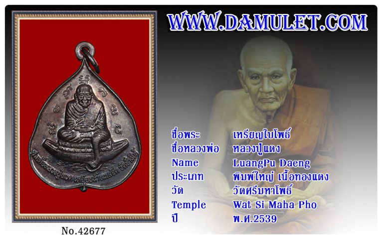 เหรียญใบโพธิ์ พิมพ์ใหญ่ หลวงปู่แดง วัดศรีมหาโพธิ์ พ.ศ.2539