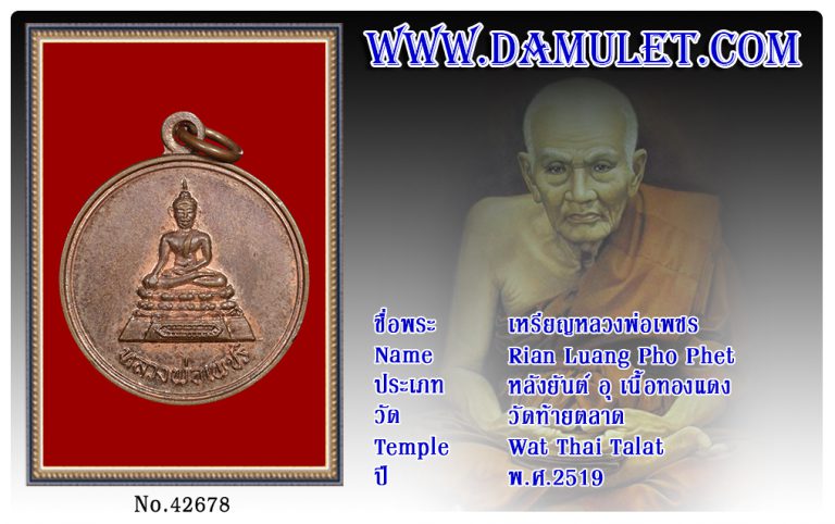 เหรียญหลวงพ่อเพชร วัดท้ายตลาด พ.ศ.2519