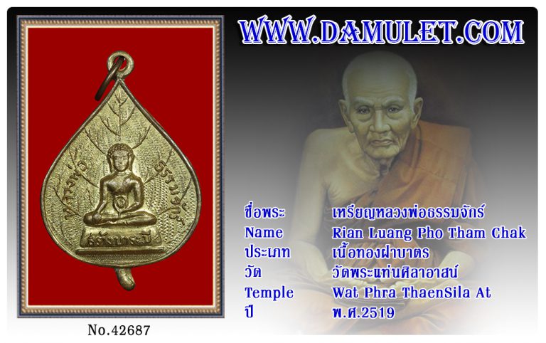 เหรียญหลวงพ่อธรรมจักร์ วัดพระแท่นศิลาอาสน์ พ.ศ.2519