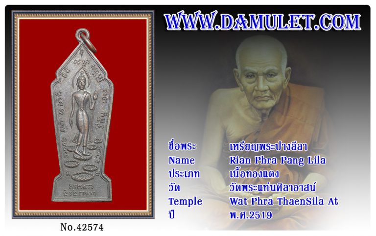 เหรียญพระปางลีลา วัดพระแท่นศิลาอาสน์ พ.ศ.2519