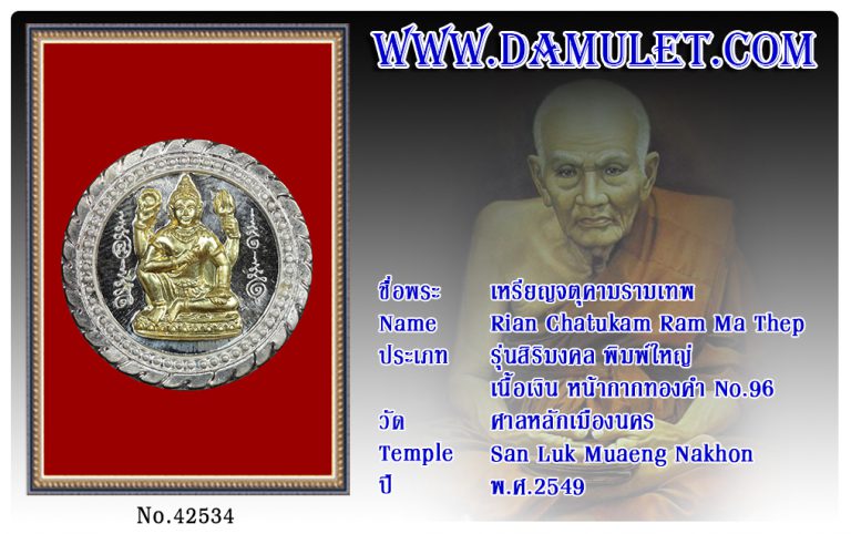 เหรียญจตุคามรามเทพ ศาลหลักเมืองนคร พ.ศ.2549