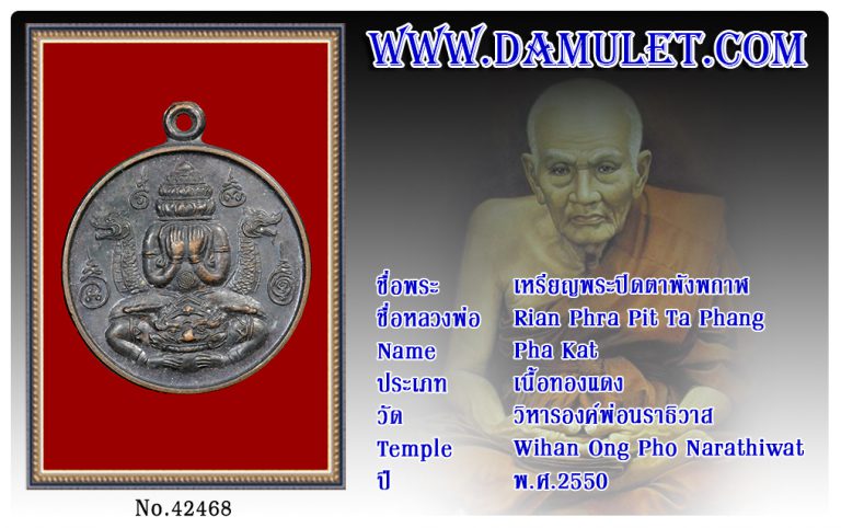 เหรียญพระปิดตาพังพกาฬ วิหารองค์พ่อนราธิวาส พ.ศ.2550