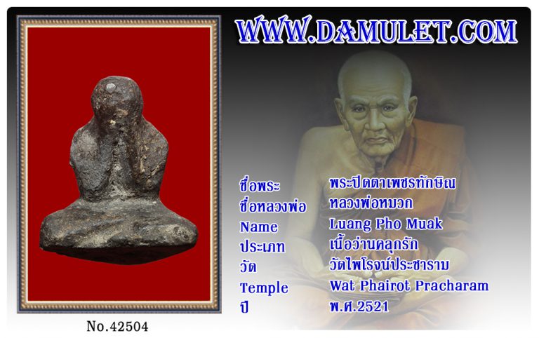 พระปิดตาเพชรทักษิณ หลวงพ่อหมวก วัดไพโรจน์ประชาราม พ.ศ. 2521