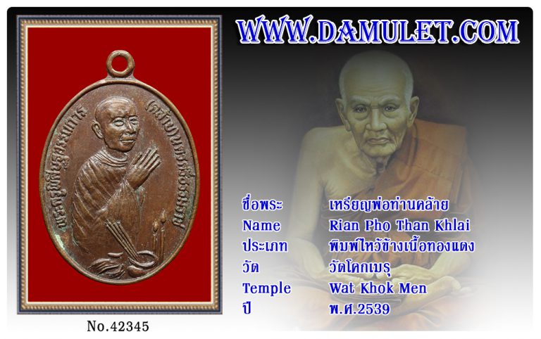 เหรียญพ่อท่านคล้าย วัดโคกเมรุ พ.ศ.2539