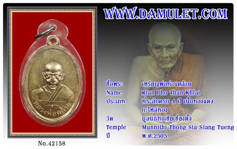 เหรียญพ่อท่านคล้าย มูลนิธิท่งเซียเซี่ยงตึ๊ง พ.ศ.2505