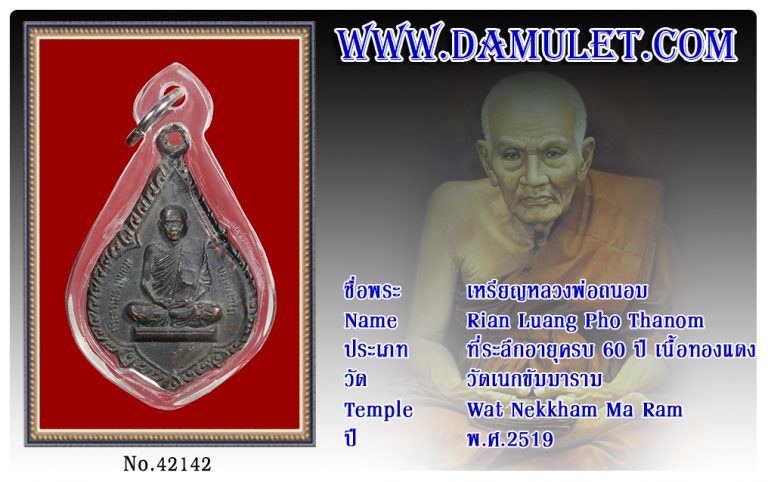 เหรียญหลวงพ่อถนอม วัดเนกขัมมาราม พ.ศ.2519