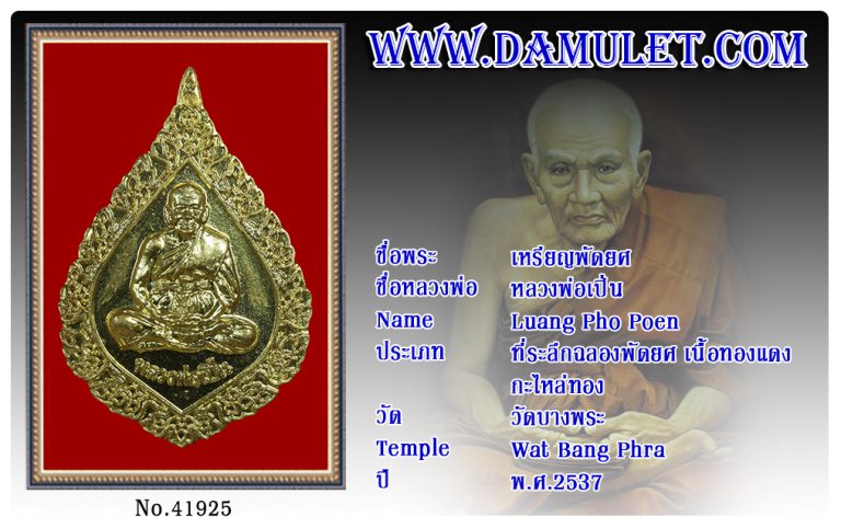 เหรียญพัดยศ หลวงพ่อเปิ่น วัดบางพระ 2537