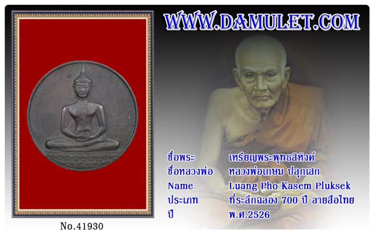 เหรียญพระพุทธสิหิงค์ หลวงพ่อเกษม พ.ศ.2526