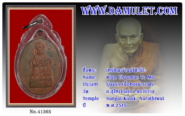 เหรียญเจ้าแม่โต๊ะโม๊ะ อ.สุไหงโกลก จ.นราธิวาส พ.ศ.2515