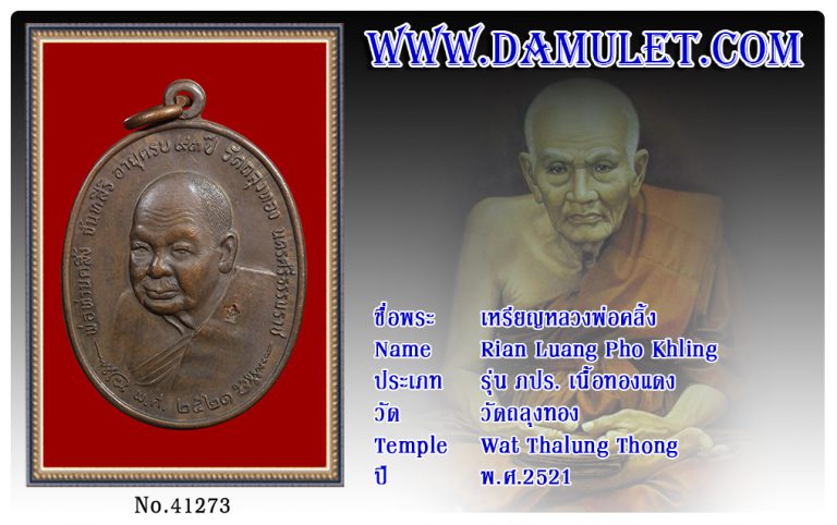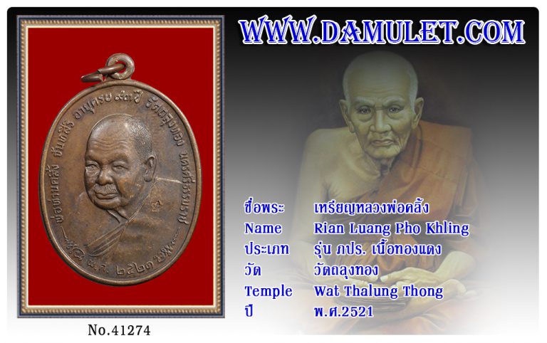 เหรียญหลวงพ่อคลิ้ง วัดถลุงทอง พ.ศ.2521