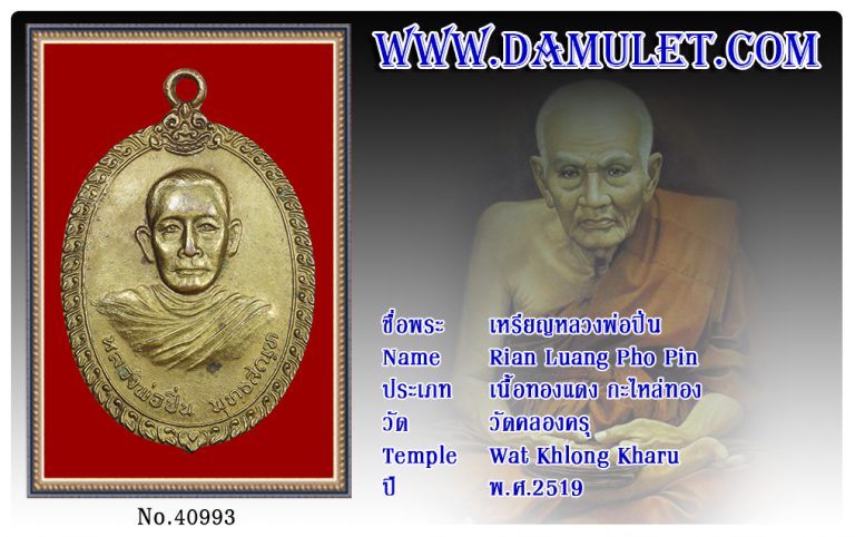 เหรียญหลวงพ่อปิ่น วัดคลองครุ พ.ศ.2519