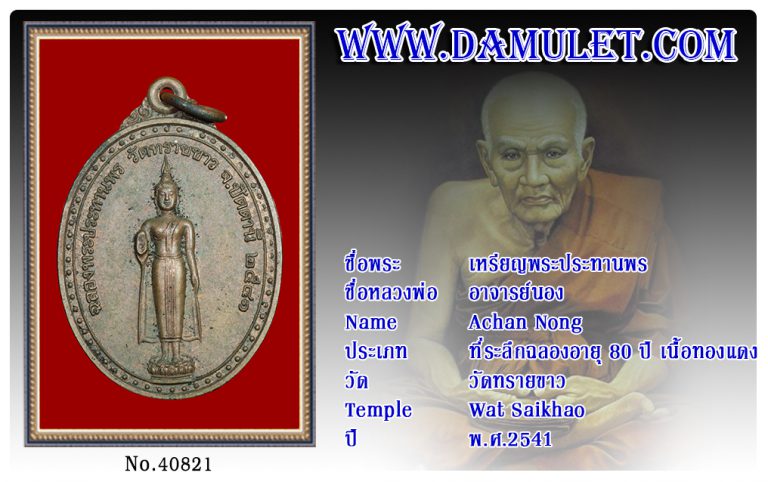 เหรียญพระประทานพร อาจารย์นอง วัดทรายขาว พ.ศ.2541