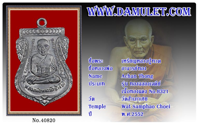 เหรียญหลวงปู่ทวด อาจารย์ทอง วัดสำเภาเชย พ.ศ.2552