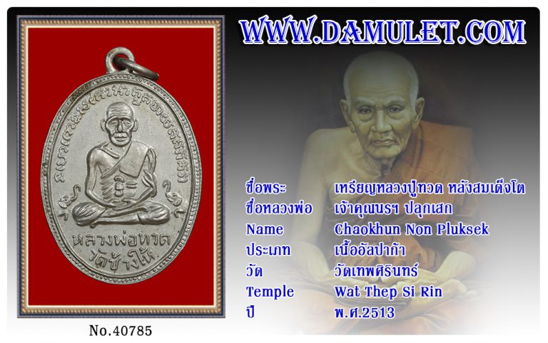 เหรียญหลวงปู่ทวด หลังสมเด็จโต เจ้าคุณนรฯ ปลุกเสก วัดเทพศิรินทร์ พ.ศ.2513