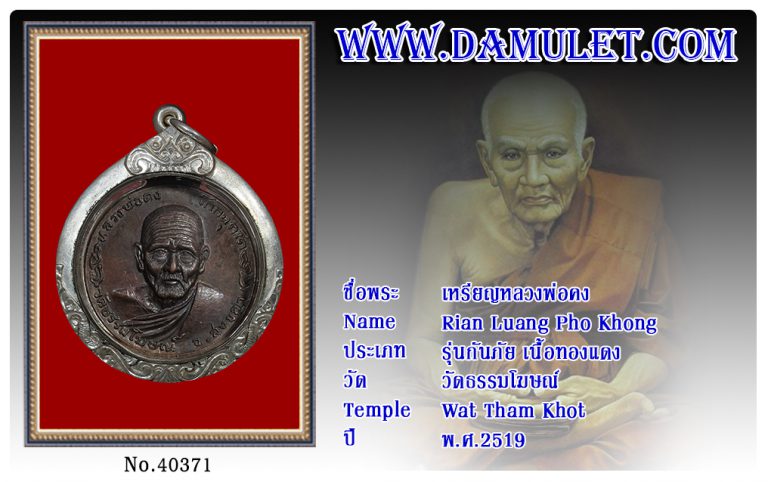 เหรียญหลวงพ่อคง วัดธรรมโฆษณ์ พ.ศ.2519
