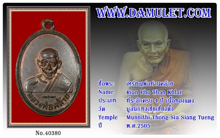 เหรียญพ่อท่านคล้าย มูลนิธิท่งเซียเซี่ยงตึ๊ง พ.ศ.2505