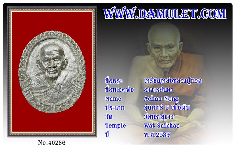 หรียญหล่อหลวงปู่ทวด อาจารย์นอง วัดทรายขาว พ.ศ.2539