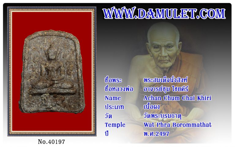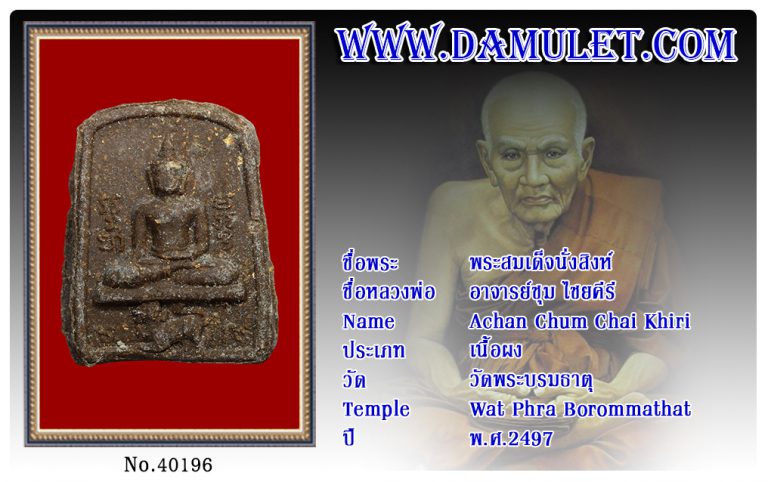 พระสมเด็จนั่งสิงห์ อาจารย์ชุม ไชยคีรี วัดพระบรมธาตุ พ.ศ.2497