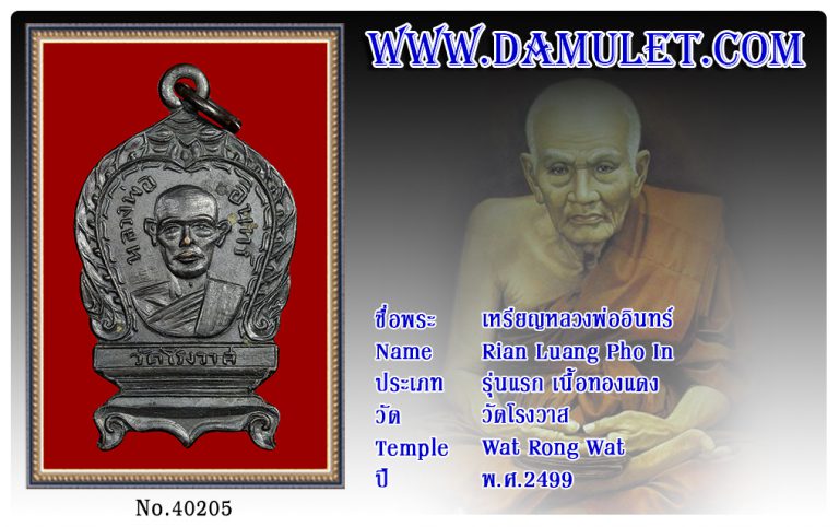 เหรียญหลวงพ่ออินทร์ วัดโรงวาส พ.ศ.2499