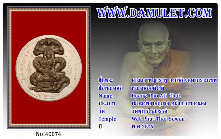 ดวงตราพญาราหู องค์พ่อจตุคามรามเทพ หลวงพ่ออติโชติ วัดพุทธไธสวรรค์ พ.ศ.2547