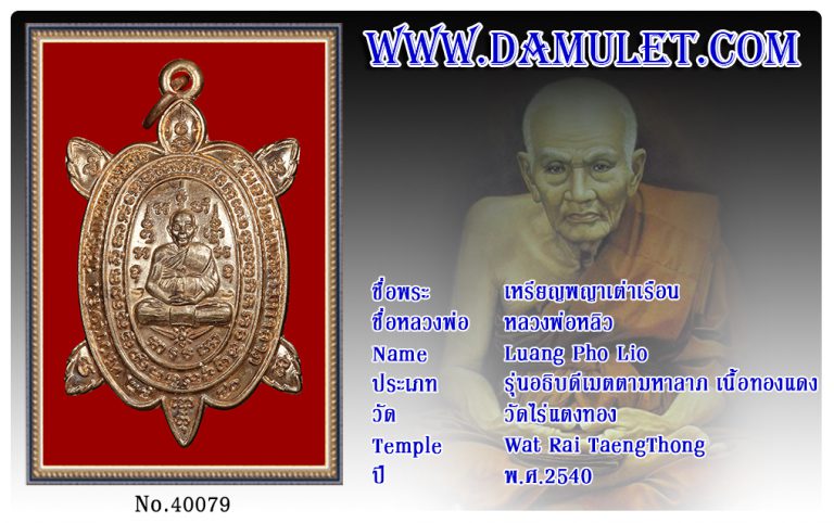 เหรียญพญาเต่าเรือน หลวงพ่อหลิว วัดไร่แตงทอง พ.ศ.2540