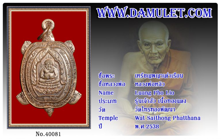 เหรียญพญาเต่าเรือน หลวงพ่อหลิว วัดไทรทองพัฒนา พ.ศ.2538