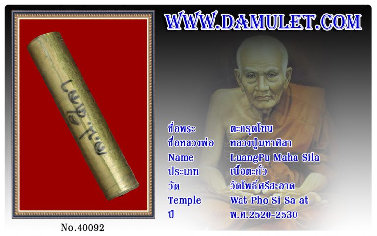 ตะกรุดโทน หลวงปู่มหาศิลา วัดโพธิ์ศรีสะอาด พ.ศ.2520-2530