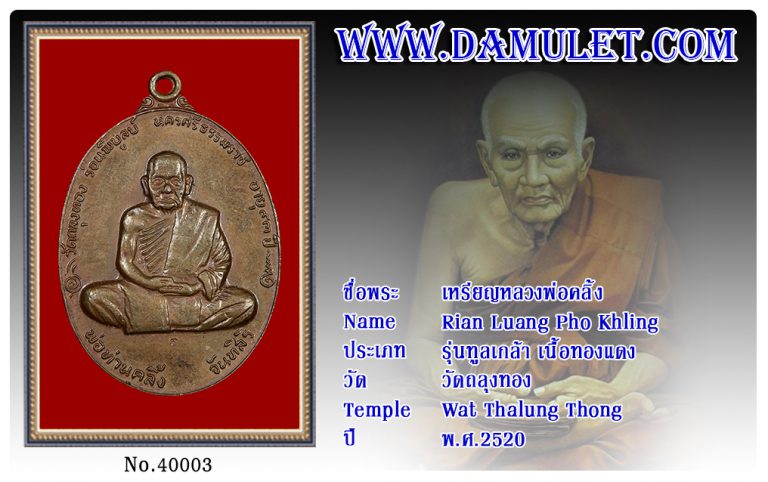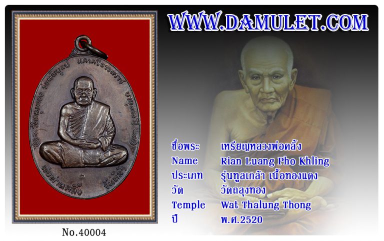 เหรียญหลวงพ่อคลิ้ง วัดถลุงทอง พ.ศ.2520