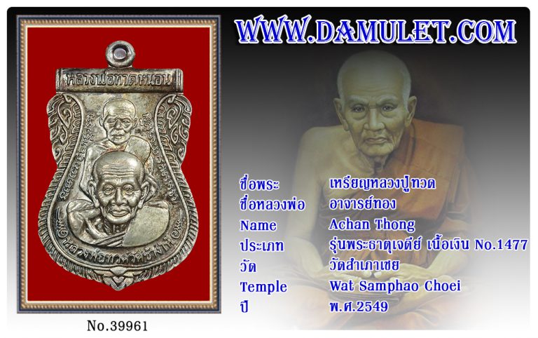เหรียญหลวงปู่ทวด อาจารย์ทอง วัดสำเภาเชย พ.ศ.2549