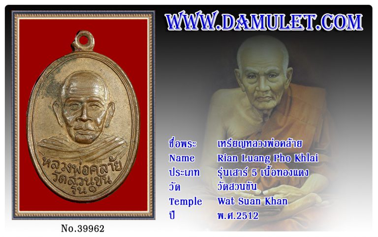 เหรียญหลวงพ่อคล้าย วัดสวนขัน พ.ศ.2512