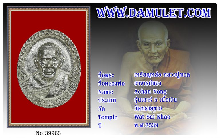 เหรียญหลวงปู่ทวด อาจารย์นอง วัดทรายขาว พ.ศ.2539
